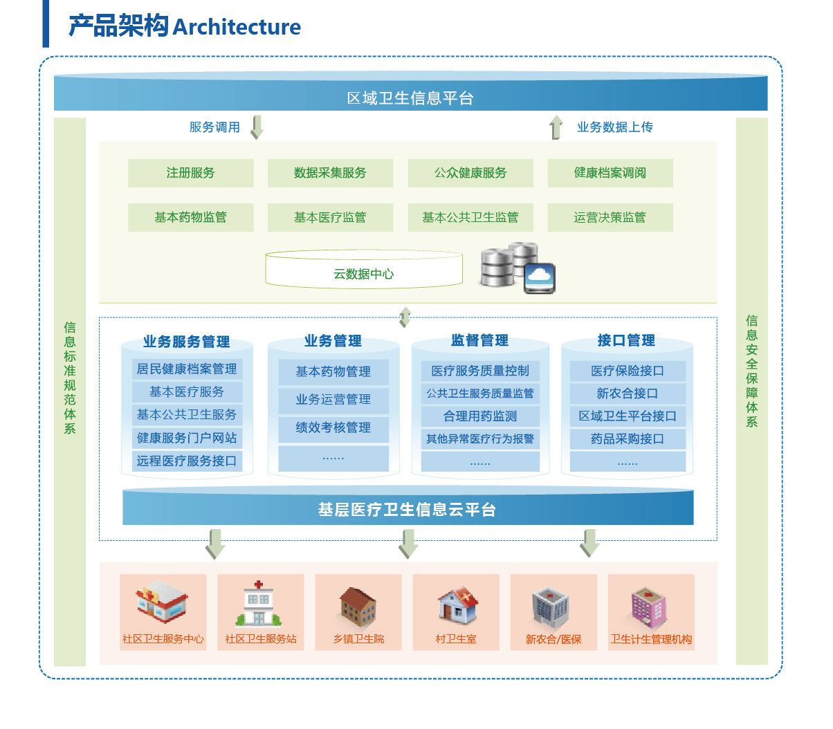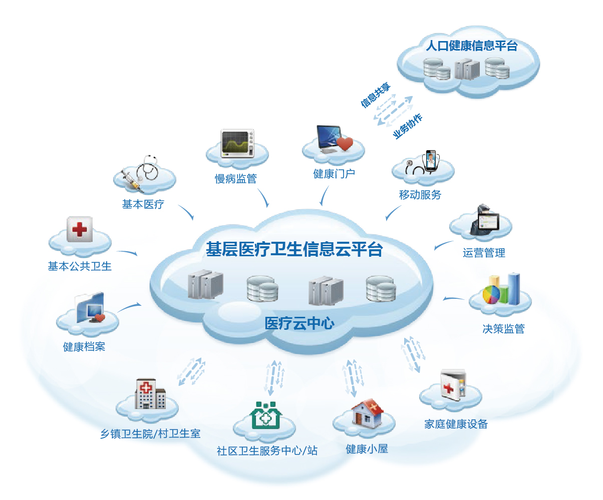 基層醫療衛生信息云平臺是以滿足城鄉居民基本醫療衛生服務的需求為目的,滿足城鄉居民健康檔案管理、基本醫療服務、基本公共衛生服務、健康信息服務以及醫療業務協同要求的信息系統。平臺采用當今主流成熟的云計算、互聯網等IT技術,基于軟件即服務(SaaS)應用模式,提供基層醫療衛生機構日常業務管理工作,提升基層醫療衛生服務管理水平。
